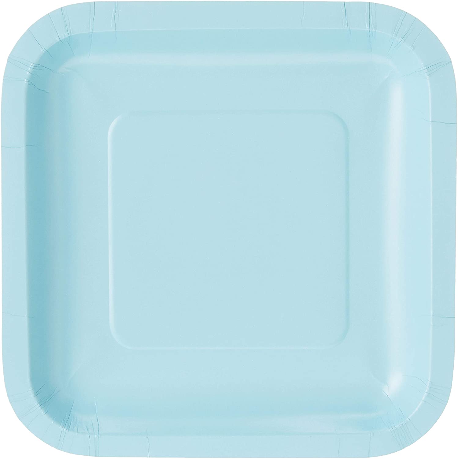 Plato de cartón cuadrado en color pastel blue.  Cantidad: 18 unidades.
